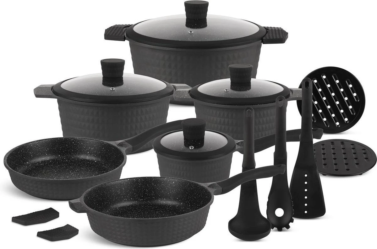 Edënbërg Gray Line – 15-delige Luxe Pannenset Van Gesmeed Aluminium