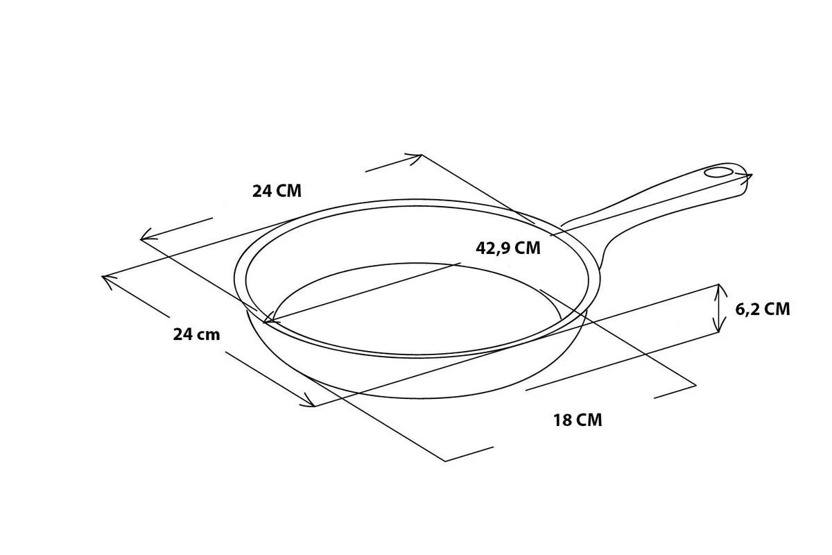 Let op: Deze koekenpan 24 cm is geschikt voor maaltijden voor 2 á 3 personen. Je bakt hier het beste kleine stukjes vlees of 2 tot 3 eieren in.