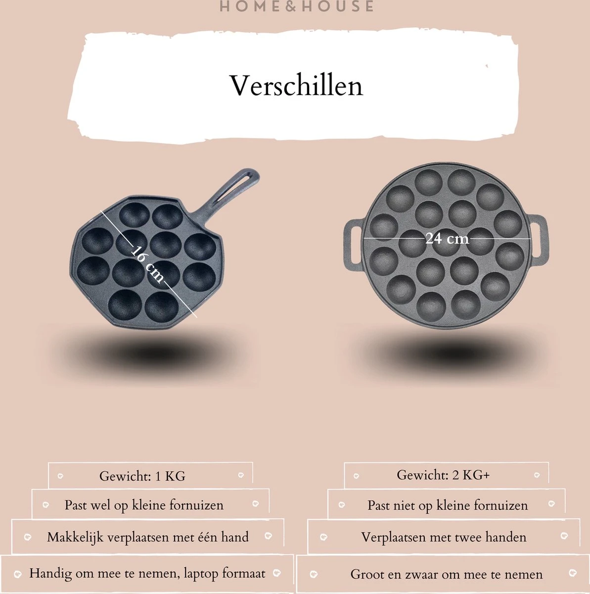 Vind je die grote gietijzeren voor poffertjes ook zo onhandig maar ben jij wel een enorme fan van poffertjes? Dan heb ik nu de oplossing! Deze gietijzeren poffertjespan heeft een diameter van 16 cm! Met één handvat is deze makkelijk op het fornuis te plaatsen en is geschikt voor zowel inductie als een gaskookplaat. Met de recepten uit het meegeleverde e-book, de doseerfles en poffertjespan maak jij de lekkerste poffertjes!