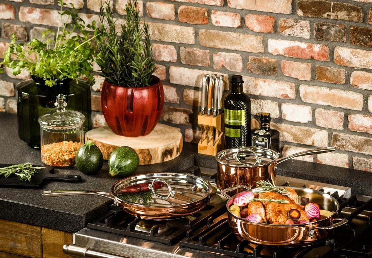 De koperen pannen zijn speciaal ontwikkeld voor inductie. Maar uiteraard kun je ze ook op gas en alle andere warmtebronnen gebruiken.