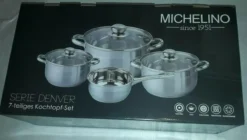 Michelino Pannenset Inductie 7-Delig – Glazendeksels – RVS Pannen – Steelpan/Kookpannen – Zilver