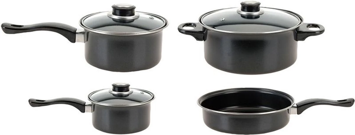 Ben je van plan om te gaan kamperen? of rond te gaan trekken met je tent? Deze 4 delige pannenset met glazen deksel is ideaal voor op reis. De set bestaat uit 2 steelpannen met deksel, 1 hapjespan en een grote kookpan met deksel. De pannen hebben een anti-aanbaklaag, zodat eten niet blijft plakken aan de pan na gebruik. Deze pannenset is niet geschikt voor keramisch en inductie koken. Kook de lekkerste en gezondste gerechten onderweg/ op vakantie!