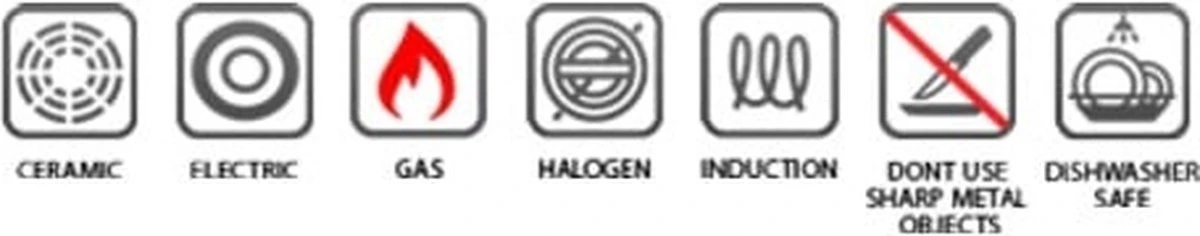 - Soort warmtebron: Alle soorten warmtebronnen (Gas, Elektra, Keramische kookplaat en Inductie)