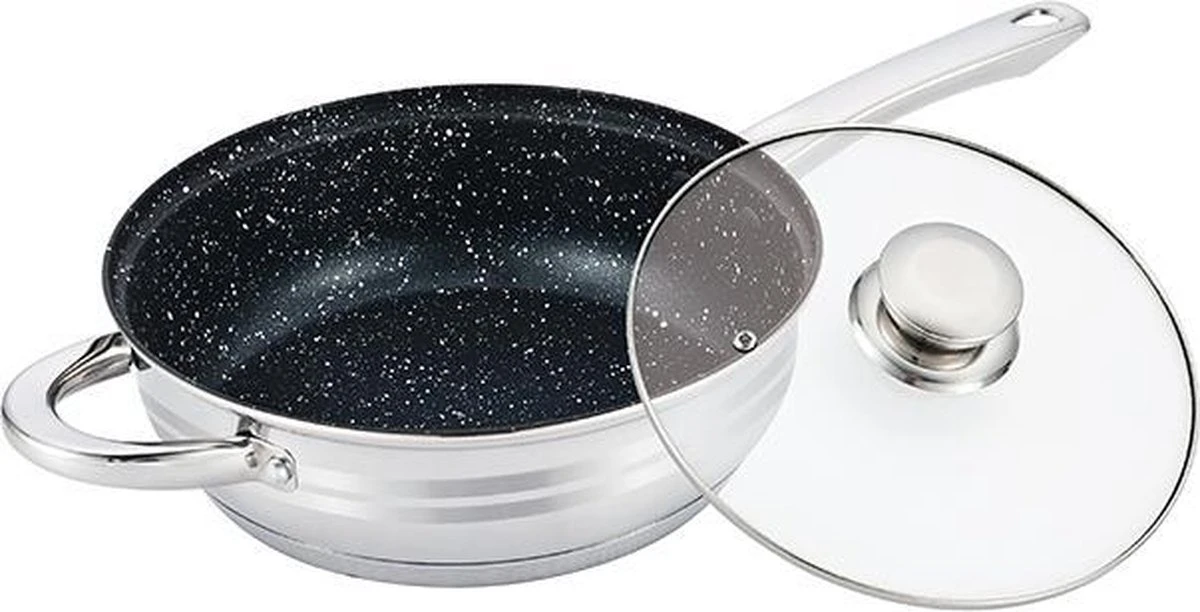 - Koekenpan ø 24 x 7,5 cm. met glazen afdekplaat (Marmeren Koekenpan)