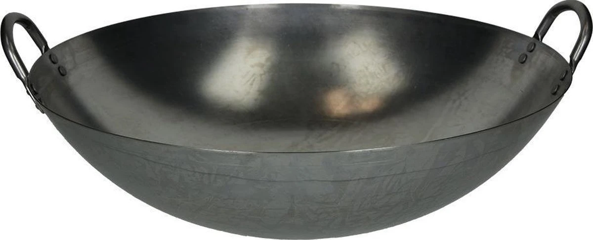 Deze stalen wokpan is een traditionele Wadjan en heeft een platte bodem waardoor je op authentieke wijze Oosters eten kunt bereiden.